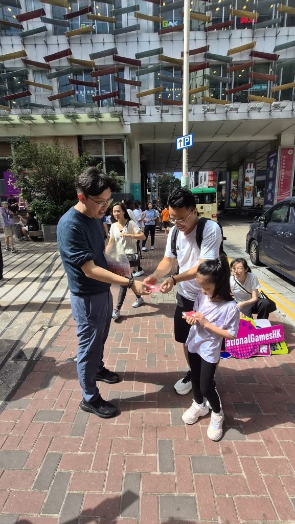 一眾嘉賓登上巡遊巴士,沿途向市民派發宣傳單張及紀念禮品宣傳全運會,市民熱烈響應,於黃大仙區掀起「全民迎全運」熱潮。